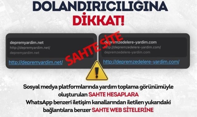 Eskişehir Siber Suçlarla Mücadele Şube Müdürlüğü, deprem felaketi sonrasında AFAD gibi resmi kurum ve kuruluşların web sayfalarını ve sosyal medya hesaplarını taklit eden 3 hesap kullanıcısını adli makamlara teslim etti. Eskişehir Siber Suçlarla Mücadele Şube Müdürlüğü, ülkemizde meydana gelen deprem felaketi sonrasında sosyal medya üzerinde AFAD gibi resmi kurum ve kuruluşların web sayfalarını ve sosyal medya hesaplarını taklit edip bağış talep ederek vatandaşları mağdur etmeye çalışan dolandırıcıların olduğunu tespit etti. 17 ilde toplam 20 hesap kullanıcısı tespit edilerek adli işlem yapılması sağlanırken, Eskişehir'de tespiti yapılan 3 hesap kullanıcısı adli makamlara gönderildi.