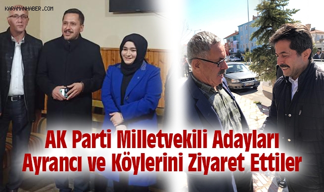 AK Parti adayları milletvekili Selman Oğuzhan Eser, Osman Sağlam ve Fatma Coştu’ya Ayrancı’da İl Başkanı Murat Öztürk, İl Genel Meclisi Üyesi Abdullah Toker, Gençlik Kolları Başkanı Kemal Toprak, Ayrancı İlçe Başkanı Avni Gümüşalan ve partililer refakat etti. AK Parti heyeti Ayrancı merkezi ve Ağızboğaz, Akpınar, Ambar, Berendi, Böğecik, Buğdaylı, Büyükkoraş, Çatköy, Divle, Dokuzyol, Hüyükburun, Kaleköy, Karaağaç, Kavaközü, Kavuklar, Kayaönü, Kıraman, Küçükkoraş, Melikli, Pınarkaya, Sarayköy ve Yarıkkuyu köylerini ziyaret ettiler.
