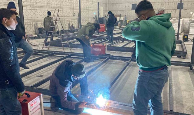 Aksaray'da depremzedelerin barınma sorununa destek olmak için kolları sıvayan sanayi ustaları, depremzedeler için gece gündüz demeden konteyner üretimi yapıyor.