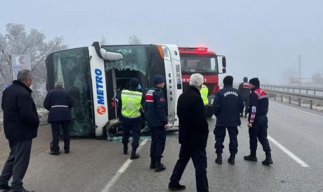 Ankara'nın Kalecik ilçesine bağlı Çandır mevkiinde 06 DT 5502 plakalı yolcu otobüsü, gizli buzlanmadan dolayı sürücüsünün direksiyon hakimiyetini kaybetmesi sonucu yoldan çıkarak devrildi. Saat 08.30 sıralarında meydana gelen kazada, çevredekilerin ihbarı üzerine olay yerine jandarma ve sağlık ekipleri sevk edildi. Edinilen bilgiye göre, Kaza esnasında otobüste bulunan 15 yolcudan 6'sı hafif yaralandı. Yaralılar, sağlık ekiplerince tedbir amaçlı hastanelere sevk edilirken, yolcu otobüsü ise çekiciyle olay yerinden kaldırıldı.