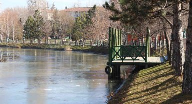 Porsuk Çayı'nın yüzeyi buz tuttu