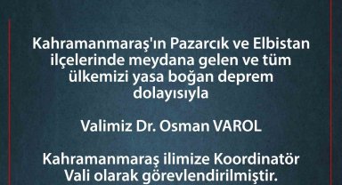 Vali Varol, Kahramanmaraş'a koordinatör vali olarak görevlendirildi