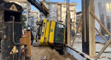 Yük boşaltan kamyon devrildi: 1 yaralı