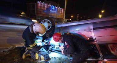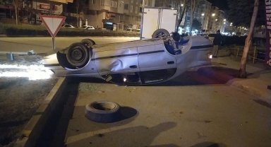 Refüje çarpan otomobil takla attı: 2 yaralı
