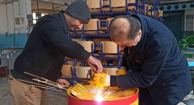 Sinop'ta meslek lisesi, depremzedeler için boş tüplerden soba üretiyor