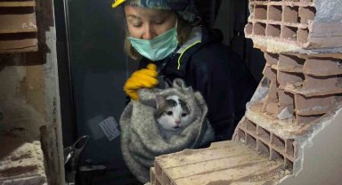 MAKE ekibi enkaza girip yaralı kediyi kurtardı