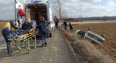 Kontrolden çıkan otomobil takla atıp tarlaya devrildi