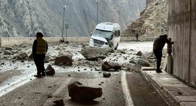 Yamaçtan kopan kayalar servis aracına isabet etti: 4 kişi yaralı