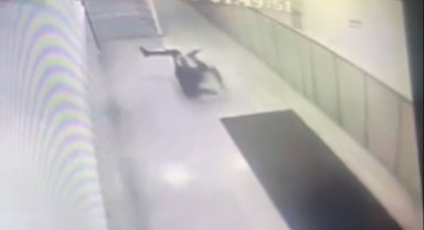 Depremden kaçarken kalça kemiğini kırdı...O anlar kameralara yansıdı