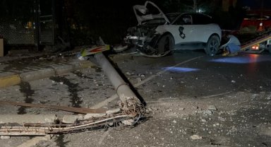Küçükçekmece'de kontrolden çıkan araç elektrik direğine çarptı: 4 yaralı