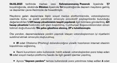 EGM: "Sosyal medya platformlarında depreme ilişkin provokatif paylaşımlarda bulunan 29 kişi tutuklandı"