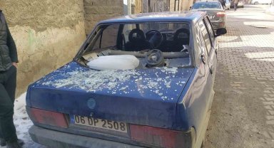 Sorgun'da Buz Kütlesi Arabanın Üzerine Düştü