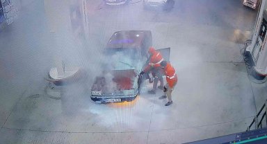 Otomobil alev aldı, sürücü kaçtı, pompacılar söndürdü