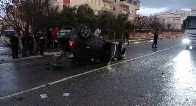 Otomobil karşı şeride geçip takla attı: 2 yaralı