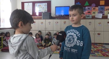 Gazetecilik mesleği tanıtılan anaokulu öğrencileri kendi haberlerini kendileri yaptı