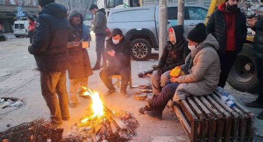 Bina çöktü kendini caddede buldu, kocası ve oğlunun kurtarılmasını bekliyor