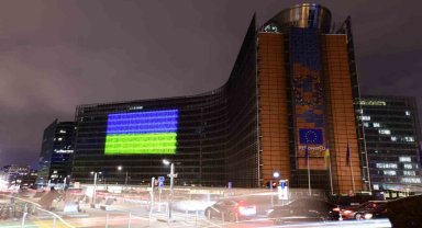 AB binalarına Ukrayna bayrağının silüeti yansıtıldı