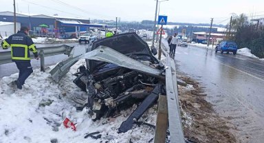 Hafif ticari araç bariyerlere çarptı: 2 yaralı