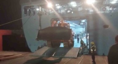 MSB: "TCG Sancaktar ve TCG Bayraktar gemileri iş makinelerini İskenderun Limanı'na ulaştırdı"