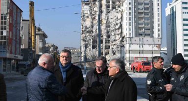 Başkan Büyükkılıç, ağır hasarlı binadaki yıkım çalışmalarını inceledi