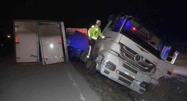 Tekel ve alkol ürünleri taşıyan tır devrildi: Alkollü sürücünün ehliyetine el konuldu
