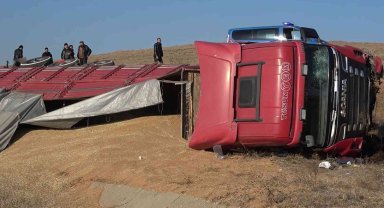 Tır devrildi, tonlarca buğday etrafa saçıldı: 1 yaralı