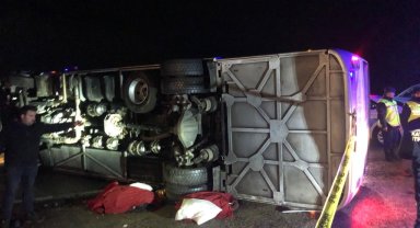 Deprem bölgesinden dönen belediye personellerini taşıyan otobüs devrildi: Ölü ve yaralılar var