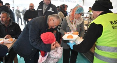 Kayseri Büyükşehir Belediyesi, İlk Konteyner Kentte Sıcak Yemek Dağıtıyor