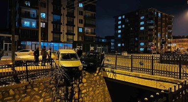 Kaza yapan otomobiller kanal kenarında asılı kaldı