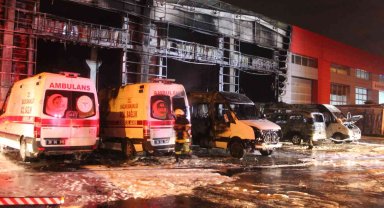 Oto servisinde yangın çıktı, 10 araç alev alev yandı
