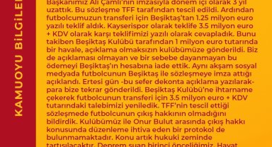 Kayserispor'dan Onur Bulut açıklaması