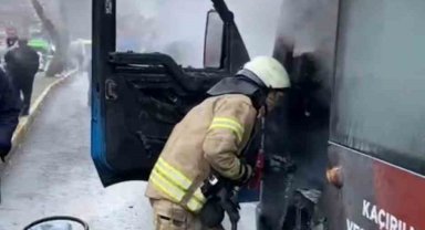 Sarıyer'de yanan minibüs itfaiye ekiplerince söndürüldü