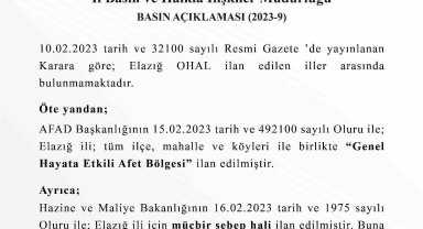 Elazığ Valiliği'nden OHAL açıklaması