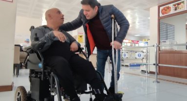 Engelli aracı enkaz altında kalan Ahmet Aslan'a akülü engelli aracı hediye edildi