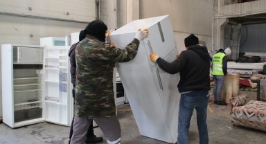 Akşehir'deki depremzedeler için beyaz eşya ve mobilya yardımı
