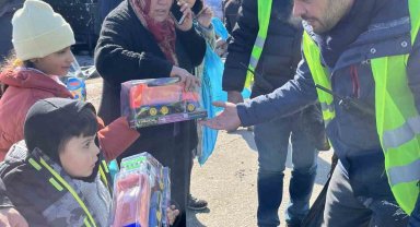 Depremzede çocuklar için oyuncak dolusu araçlar afet bölgesinde