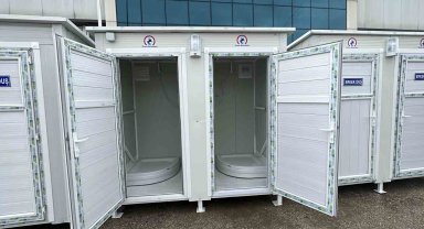 Düzce Belediyesi'nin seyyar tuvalet ve duş kabinleri depremzedelere gönderildi