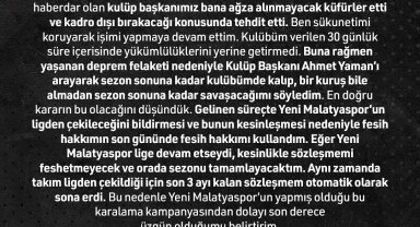 Doğukan Emeksiz'den, Yeni Malatyaspor'a yanıt: "Kulüp başkanımız bana ağza alınmayacak küfürler etti"