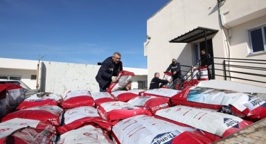 Bayraklı Belediyesi'nden deprem mağduru can dostlara mama desteği