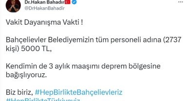 Bahçelievler Belediyesinden deprem bölgesi için 14 milyon TL bağış