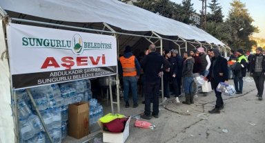 Sungurlu Belediyesi, Hatay'da 10 bin kişiye sıcak yemek verecek aşevi kurdu
