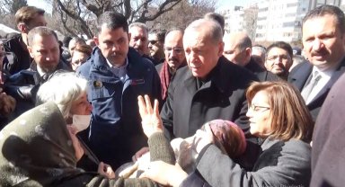 Depremzede kadın Cumhurbaşkanı Erdoğan'a sarılarak ağladı