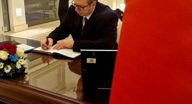 Sırbistan Cumhurbaşkanı Vucic, Türkiye'deki depremzedeler için taziye defterini imzaladı