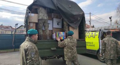 Kosova'da Türkiye için toplanan yardımlara Mehmetçik'ten destek