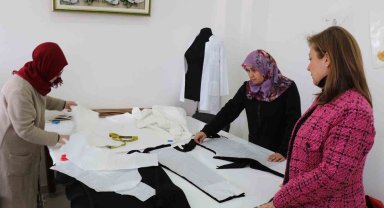 Safranbolulu kadınlar depremzedeler için kıyafet dikiyor