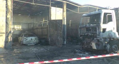 Belediyenin garajında patlama: Makam aracı yandı, çöp toplama aracı hasar gördü