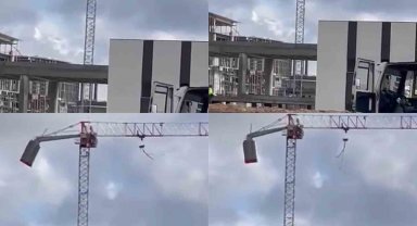Depremde kule vinçin ağırlığı işte böyle çöktü