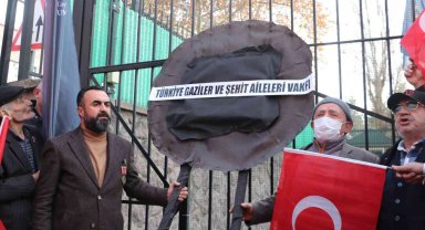 Gaziler ile şehit yakınları, İsveç'in Ankara Büyükelçiliği'ne siyah çelenk bıraktı