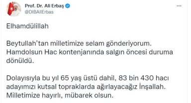 Diyanet İşleri Erbaş: "65 yaş üstü dahil, 83 bin 430 hacı adayımızı kutsal topraklarda ağırlayacağız"
