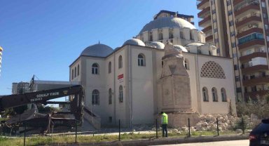 Depremde hasar gören caminin minaresi kontrollü şekilde yıkıldı